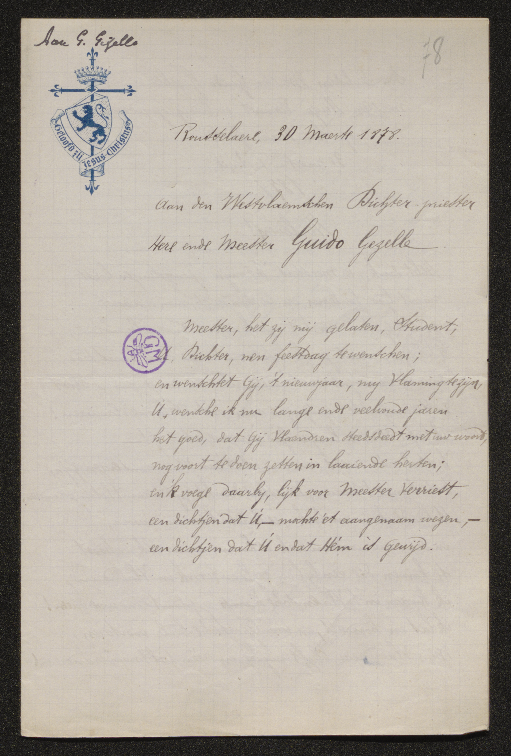 Aan den Westvlaemschen Dichter-priester Here ende Meester Guido Gezelle.