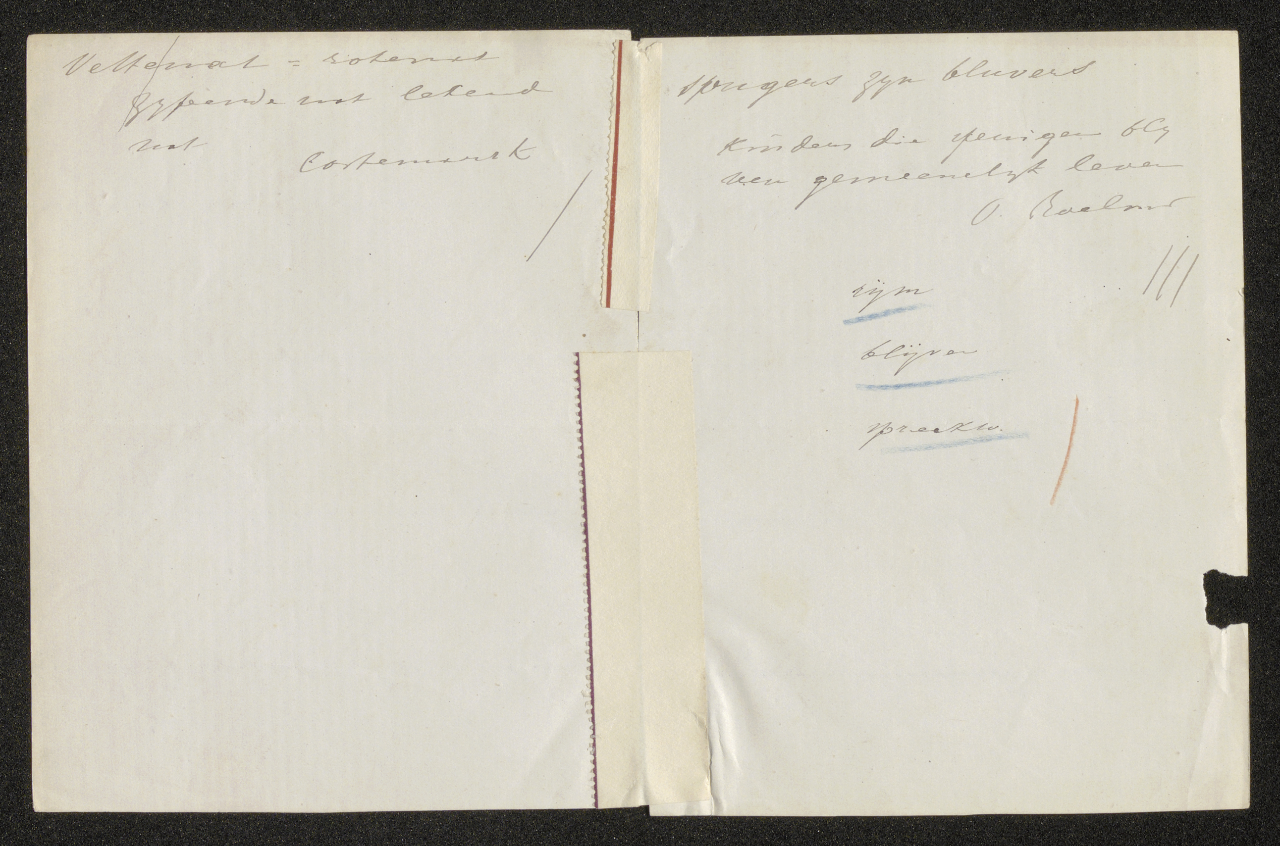 Dyssendag aanstaande, 12 October, is het te Ruddervoorde ten mynen huize vergâring van den "Swighenden Ede". Het ware het jong gezelschap, bestaande uit Hugo Verriest, Vanhee en Consoorten, aller aangenaamst, wildet gy de vergâring met uwe tegenwoordigheid vereeren. Vergadering begint ten 1 1/4 uren, zoodat gy met het konvooi van rond den Elven schoone kunt landen. Dr Lauwers is ook van den hoop. Het wachtwoord[1] is: "Elc were sich en slepe de ē"[2]