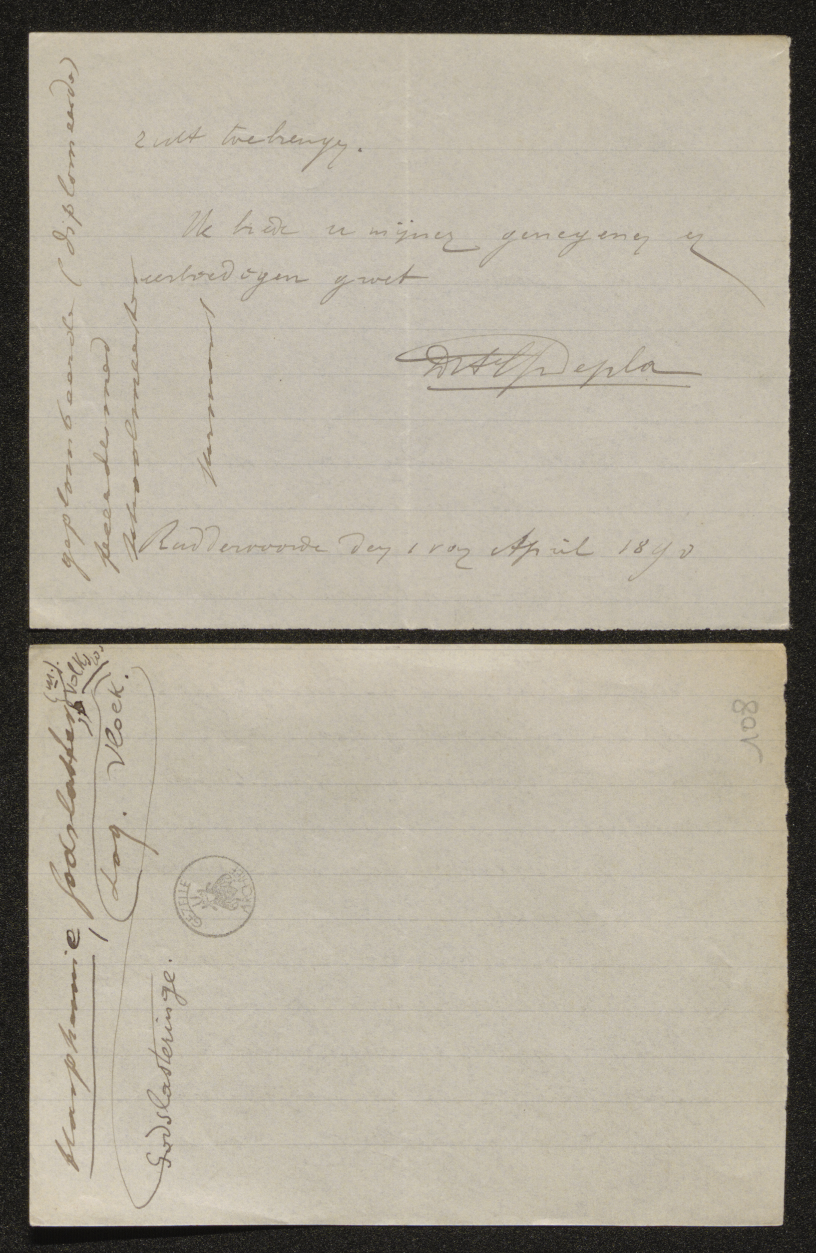 Ruddervoorde den 1 van April 1890
