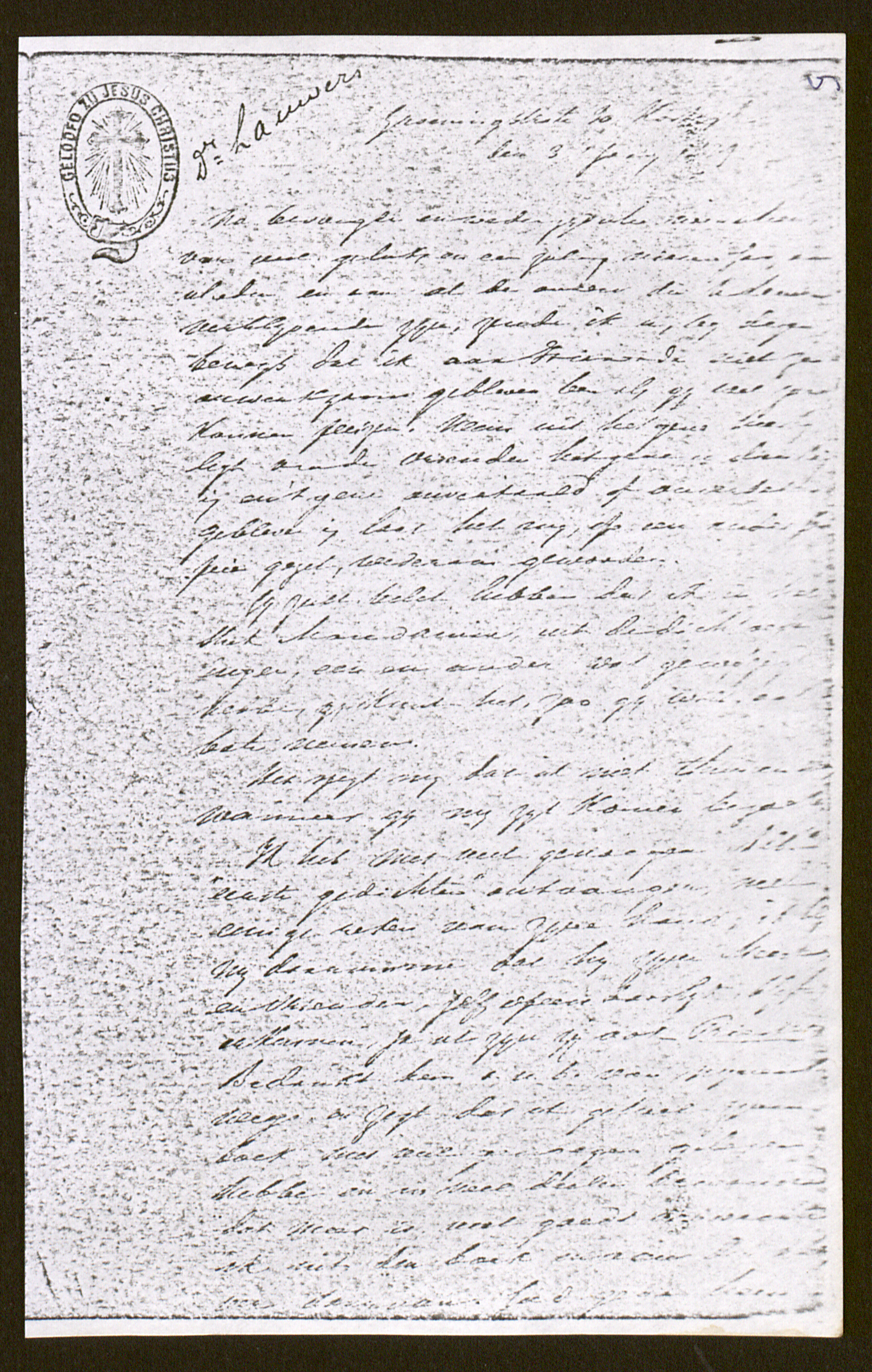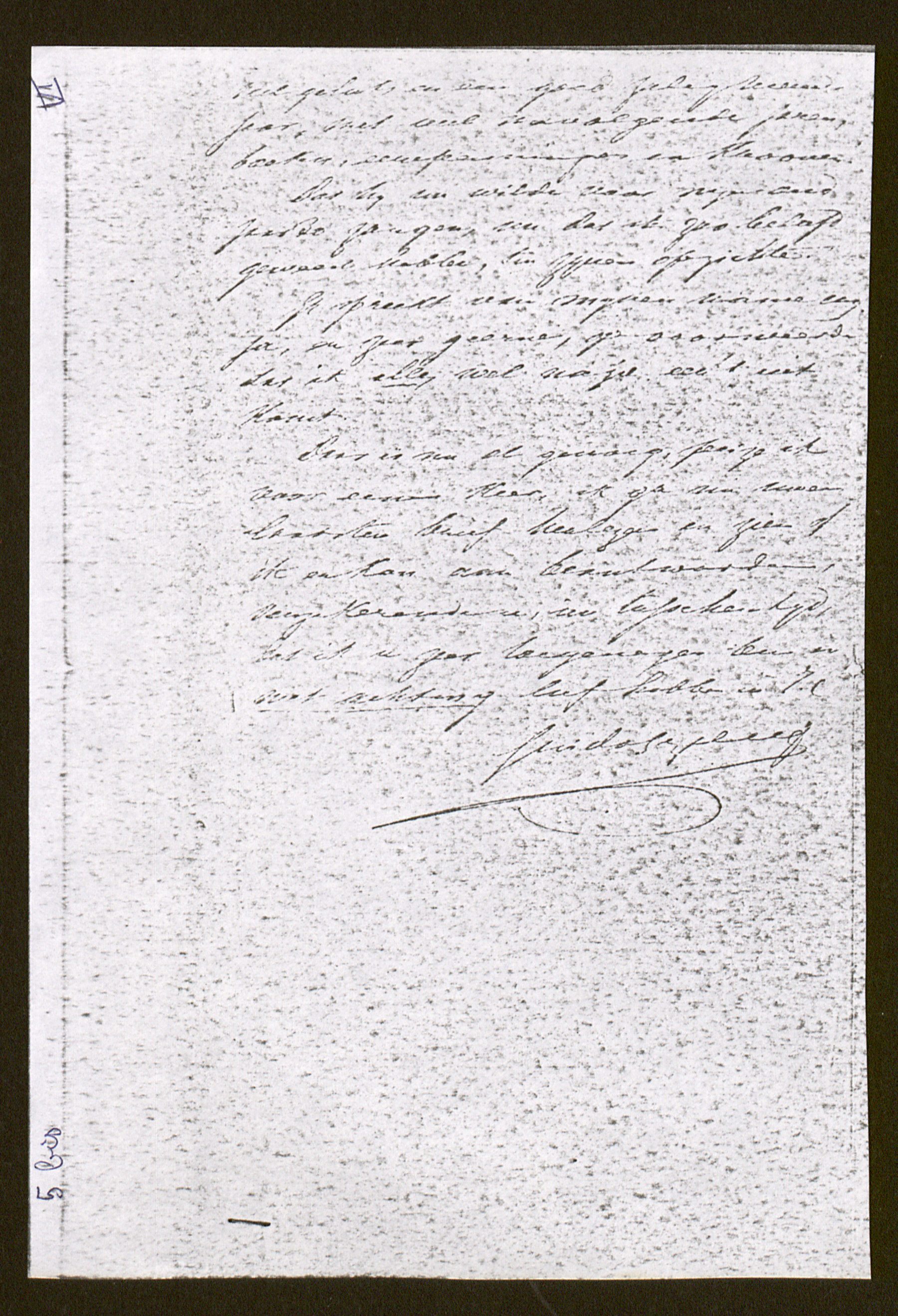 Daar is nu al genoeg, peize ik voor eenen keer, ik ga nu uwen laatsten brief[8] herlezen en zien of ik er kan aan beantwoorden,