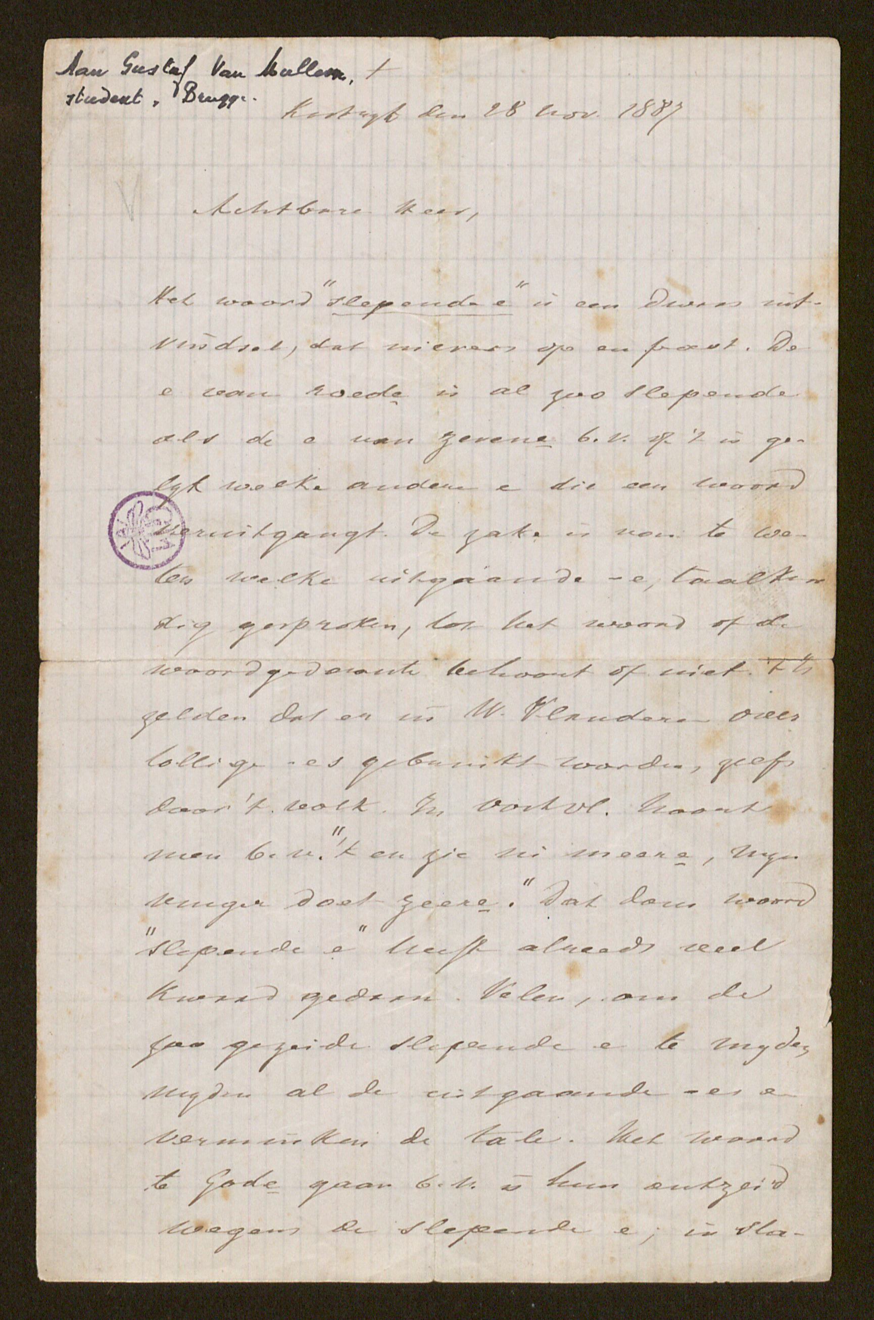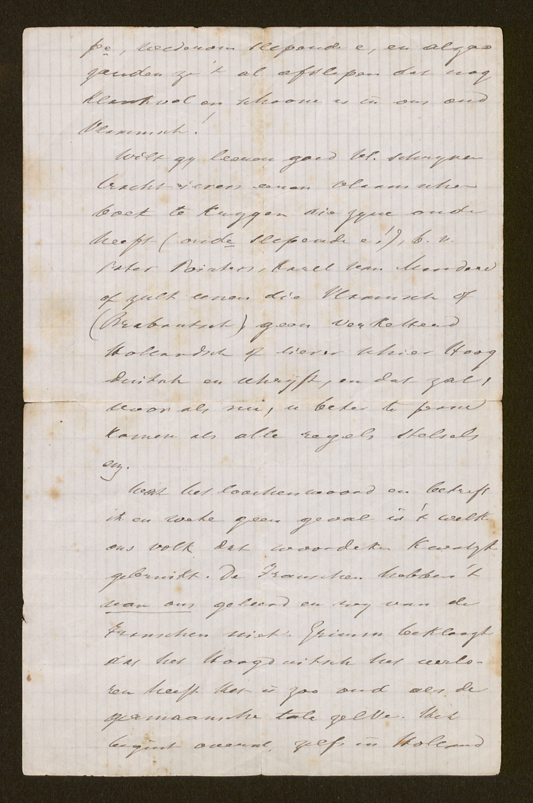 Wilt gy leeren goed Vlaamsch schryven tracht ievers eenen vlaamschen boek te krygen die zyne oude[2] heeft (oude slepende e!) b.v. Pater Poirters,[3] Karel van Mandere of zulk eenen die Vlaamsch of (Brabantsch), geen verketterd Hollandsch of liever schier Hoogduitsch en schryft, en dat zal, voor als nu, u beter te passe komen als alle regels stelsels enz.