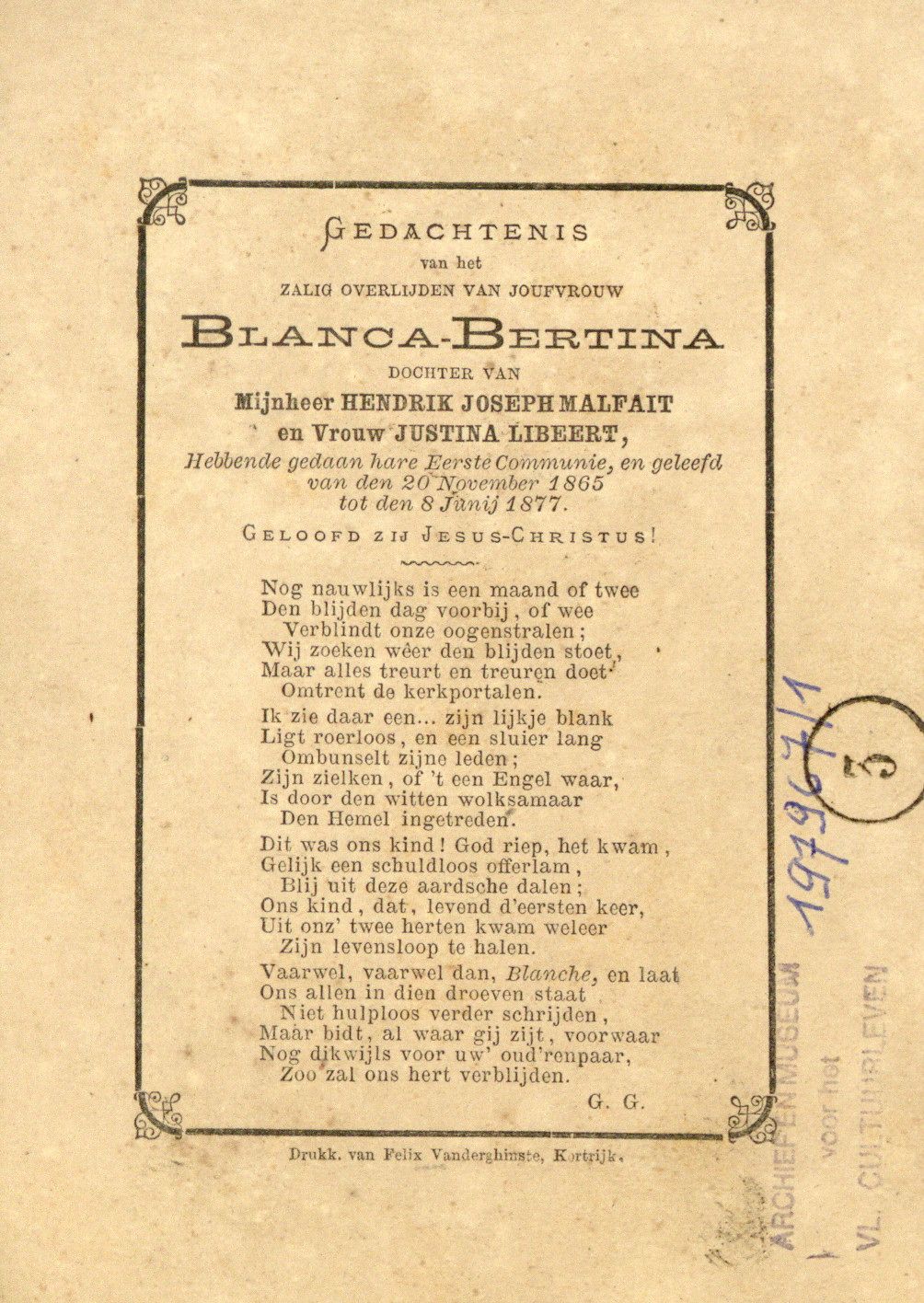 Drukk. van Felix Vanderghinste, Kortrijk.